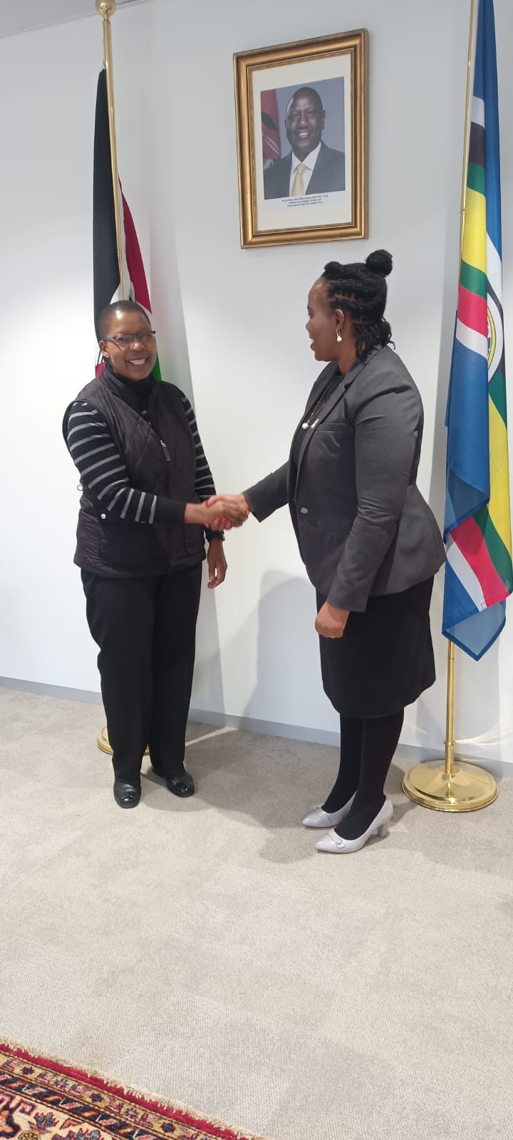The Hon. Attorney General Dorcas Oduor, today,2nd December 2024 paid a courtesy call to the Permanent Representative of Kenya to the Permanent Mission of Kenya to the UN and Other International Organizations in Geneva, Switzerland, H.E. Amb. Fancy Too.